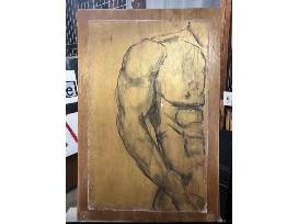 Repurposed wood door section with charcoal nude study.