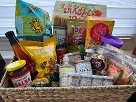 Dinner & Snack Basket courtesy of Trader Joe's and Florida Pure Sea Salt.