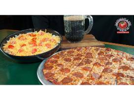 Thin crust pizza, family size salad with that sweet and tart dressing! Oh yes that is Monical's Pizza!