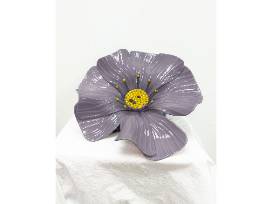 - 3-foot-tall fused glass flower on a copper garden stake by glass artist Caryl Segalewitz