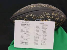 Do your own Lambeau Leap if you win this autographed Green Bay Packers football, signed by players on the 2022 roster that played in London, England. A collector's item for an avid Packer fan! Player signatures lithographed onto football.