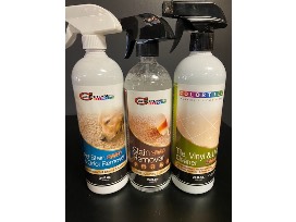 This package includes Tile/Vinyl Cleaner, Pet Stain/Odor Remover, Stain Remover, and Koozies.