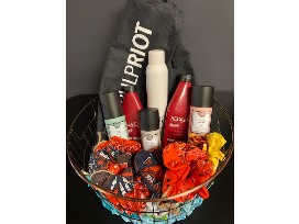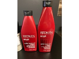 Keep your hair looking great with Redken Color Extend Shampoo/Conditioner, Maria Nila Styling Spray, Mousse, and Salty Mist, Authentic Beauty Concept Finishing Spray, 29 Schrunchies, and a Sling Bag.