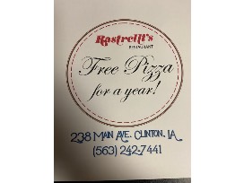 You will receive dated certificates for 1-large one topping Rastrelli's pizza a week for a whole year! Get it hot or take-and-bake! Have dinner planned at least once a week for your family!