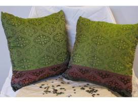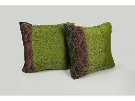 1Elevate your home decor with two beautiful decorative green lumbar pillows an Indian Banarasi silk sari, 43" x 14". 100% silk.
