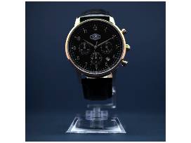 "The Traveler" is a sophisticated looking chronograph time piece featuring a double buckle metal clasp. Miyota battery powered quartz movement. Genuine leather band. This rose gold and black watch is an elegant accessory to any outfit! 40mm.