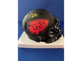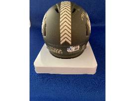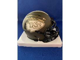 You are bidding on a signed Salute to Service Smith Chiefs mini helmet with '93 Sacks Leader added. (Beckett COA) and a Eclipse Alternate Chargers signed mini helmet by Edwards-Helaire. (Beckett COA).
