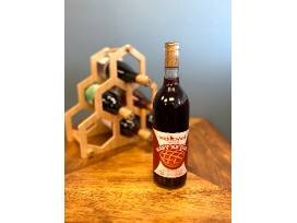 - 6 bottles of South Dakota wine with hexagon wine rack.