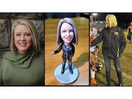 Join us in the BATTLE OF THE BOBBLE HEADS by bidding on this one-of-a-kind look-alike of our very own Suzy Collignon-Hodgen '98. She's taking on challenger, Floyd Rummel '03 for the honor of being the highest purchase at this year's event.