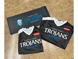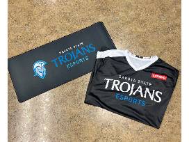 Get your game on with three e-sports jerseys and two large mouse pads featuring the Dakota State Trojans. Perfect for any gaming setup, these items will have you representing your team with style and pride.