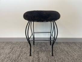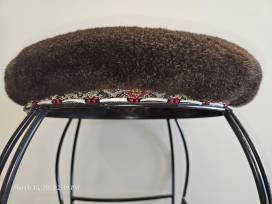 A luxurious sea otter stool decorated with glass beads, dentalium shells, and ribbon.
