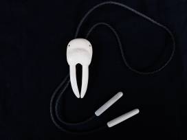 Ivory walrus head with baleen eyes and ivory bolo ends