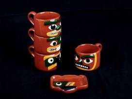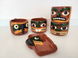 Made of resin, four cups stack to form a totem with a matching ashtray