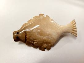 Halibut shaped pin carved from bone or ivory