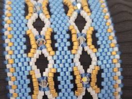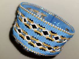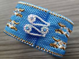 A stunning hand beaded bracelet inspired by the official state flower of Alaska, the wild native alpine forget-me-not.