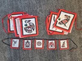Two large banners and one small banner. Custom designed fabric & art, printed, sewn and designed by the artist, Tamara Johannes.