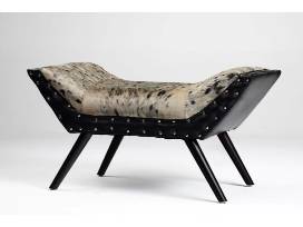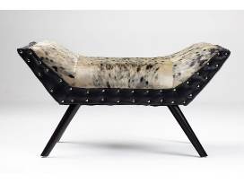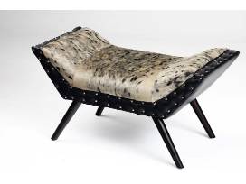 Sealskin and leather ottoman, signed by artist