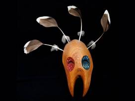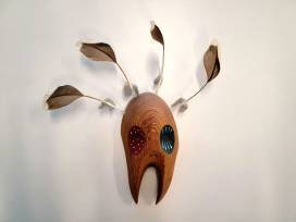 Spirit mask made with feathers and cottonwood.