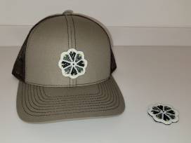 Adjustable cap with a beaded design on the front panel, with an extra beaded patch.