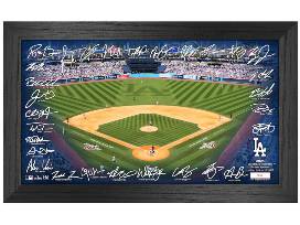 Celebrate your Los Angeles Dodgers playing at Dodger Stadium with this 2024 Signature Field photograph. Part of a Limited Edition of 5,000, this photograph features facsimile signatures of all of the big name Los Angeles Dodgers players and offers a gorgeous view of Dodger Stadium. This piece of memorabilia will fit perfectly in your fan cave or office!