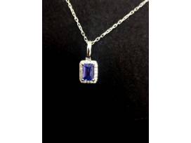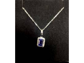 Beautiful Natural Tanzinite and Diamond sterling silver necklace in an Emerald cut. The Tanzinite mines are closed making this a rare gemstone.