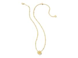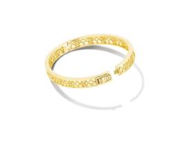 Kendra Scott "Kelly" bangle bracelet, huggie earrings, and pendant necklace in 14K yellow gold over brass.