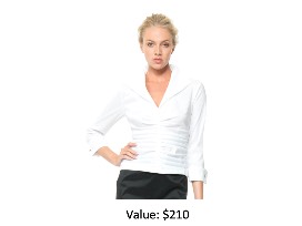 Tadashi ShojiWinged Collar Stretch White Taffeta Blouse in size 12. Stretch white taffeta Winged collar Long sleeves Ruched front Back hidden separating zipper. Color: White Material: 62% Rayon 32% Poly 6% Lycra