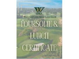 Golf Foursome at Westchester Hills Golf Club! Westchester Hills Golf Club looks forward to welcoming you and three guests for a round of golf at our newly redesigned golf course by Rees Jones. Certificate is redeemable Tuesday-Thursday in the 2023 season, subject to availability. Enjoy lunch on the patio following your round.