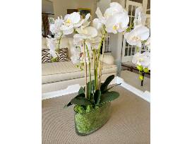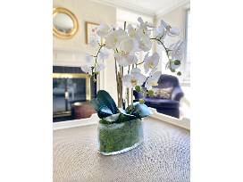Orchid Splendor! Add permanent beauty and elegance to any room with this spectacular faux orchid with moss base presented in a chic glass oval vase. This no maintenance, high impact arrangement measures 26" in height by 16" in width. A perfect housewarming, birthday or Mother's Day gift!