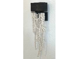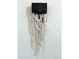 Media: handmade porcelain beads, strung on wire, wood and metal mount