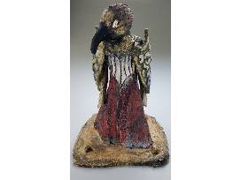 Valerie Yardley sometimes feels she is a ceramic artist by chance. She was a weaver many moons ago, had success in Philadelphia and started a tapestry studio. She went on to begin a fabric workshop for adults who were intellectually challenged - she was much more successful with them at keeping straight edges than teaching other adults! Her weavings became dimensional and tubular figures so it was no surprise that when she turned to ceramics she enjoyed the same. She feels her pieces are narrative and is never quite sure what will happen. When people asked me about her weavings as to how long they took, she learned to answer, 'My whole life!' The same is true of ceramics.