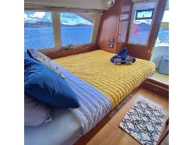 5 guest staterooms, each with an in-suite bathroom. Gourmet food, drinks & alcohol included. Fishing & snorkeling gear, floating mat, paddle boards, skiing & more. The experienced two person crew including a Captain and a Steward/Chef will sail throughout USVI and BVI.