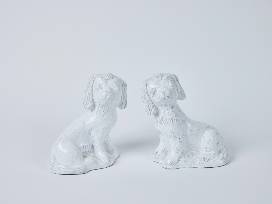 Elevate your home decor with this modern set of two Staffordshire Dogs in white ceramic.