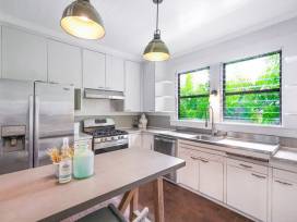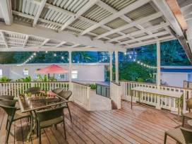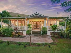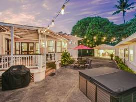 Indulge in an irresistible Hawaiian getaway this Fall at the Aloha House. This tropical oasis is close to two island golf courses, sleeps 12 guests and boasts 5 bedrooms and 5 bathrooms. Immerse yourself in the charm of old Hawaii, with beautifully restored vintage elements harmoniously blended with modern luxuries. Revel in the convenience of updated bathrooms, a chef's kitchen, air conditioning, smart TVs, and reliable mesh WiFi.