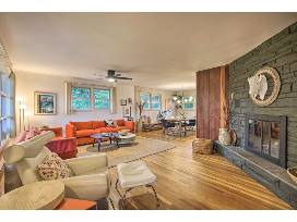 CASA BISON, vacation home, in the Hudson Valley New York / Catskill mountain area. Up to 4 days -Monday through Thursday to be arranged with Michelle Hughes directly for availability. The house is 3 bedrooms, 2 bath mid-century home with attention to mid-century detail. It sleeps 8 (with one person sleeping on day bed on the sun porch). There is a back porch that looks over the rolling hills where the Buffalo roam with a BBQ grill. There is also a front covered porch for relaxing on a nice day. Excludes holidays. Expiration for booking: June 1, 2024.