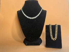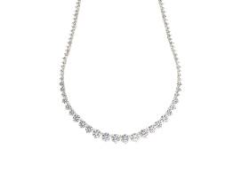 Fashioned in sleek gold-plated brass, this timeless design features a brilliant array of shimmering Cubic Zirconium stones. Make any look glimmer with this classic, delicate Marlyn Schiff Tennis Necklace.