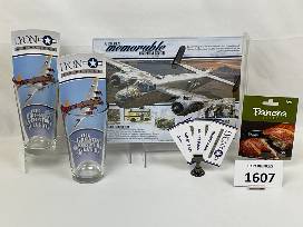 Two 16 oz pint glasses with airplane etched into the glass