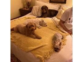 Heading on vacation to MI, IN, or OH? Make sure your pup gets a vacay, too! Drop your doggo (up to two doggos) at the Blyth Bed and Breakfast for Dogs in Three Oaks, MI on your way to your destination. Your pup will love the ride snuggled in a dog-themed 50" x 60" fleece throw from Eddie Bauer. And your pup will travel in style with all their things packed in a trendy cream-colored Marine Layer tote with fun rainbow straps.
