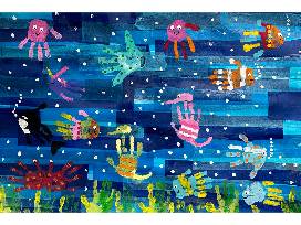 each creature as a handprint. This masterpiece is worthy to be hung in any art museum!