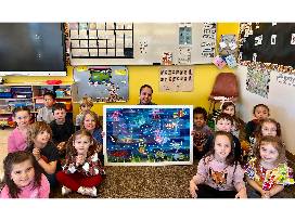 Josie's talented Kindergartners explored and learned all about ocean marine life and the result is this ONE OF A KIND auction art. Each child researched the many underwater creatures and successfully interpreted