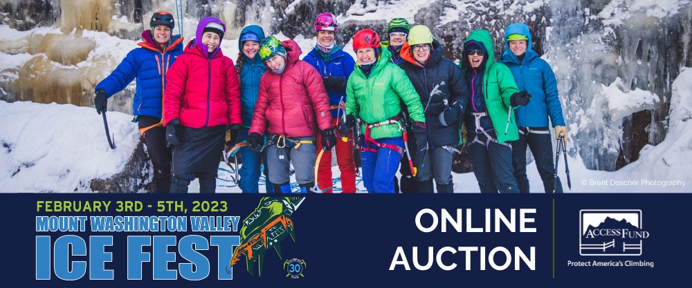 You can still participate in the auction!Welcome to the 2023 Mount Washington Valley Ice Fest, Online Auction