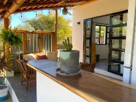 Todos Santos is a natural paradise where the desert meets the Sierra Laguna mountain range that is located on the Pacific coast about 45 miles north of Cabo San Lucas. OWNERS NOTES: Your 4-night stay must be during one of the following: Oct 6-16, 2023 OR November 3-13, 2023. Must book before July 31, 2023. The Casita shares yard space with the owner's main house. AirBnB Listing.