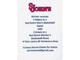 - 2 Tickets to a Red Storm Men's & 2 Tickets to a Red Storm Women's Basketball Game of their choice at Carnesseca Arena
