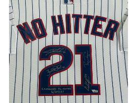 Now here is your chance to celebrate some Cubs history with this custom Cubs "No Hitter: Cubs jersey autographed by Davies, Tepera, Chafin and Kimbrel and inscribed with Combined No Hitter 6/24/21.