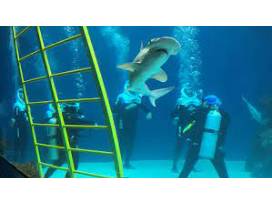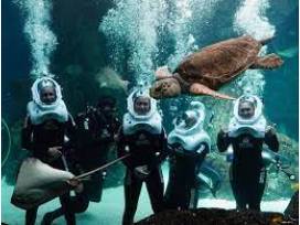 Take an aquatic adventure with SeaTREK, a guided underwater walking tour! Designed for non-divers 10 years of age or older, SeaTREK takes place in our 15-foot deep Heart of the Sea habitat where participants can explore coral caves alongside hundreds of fish, spotted eagle rays, bonnethead sharks, and a loggerhead sea turtle! With no swimming involved, this exciting underwater opportunity allows people from all walks of life - even those not well acquainted with water - access to the wonders of the aquatic world.