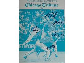This piece of history is one you will want forever. Chicago Cubs World Series Champion "At Last" autographed and framed press plate from the Chicago Tribune the day after the Cubs won the World Series. Press plates are metal plates used to transfer text and images on a printing line. Autographed by Anthony Rizzo, Kris Bryant, Javier Baez, Addison Russell and Mike Montgomery.