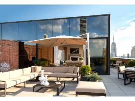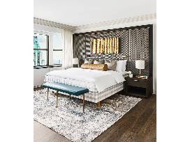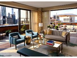 Spanning three floors, the ultra-modern and magnificently decorated Penthouse Suite offer the ultimate retreat in the heart of Midtown Manhattan. Perfect for entertaining, these showplaces have stylish furnishings, in-suite elevators, and stunning city views through soaring 18-foot windows. Designed to feel like a home-away-from-home, the suite features a solarium with a working fireplace, a personal gym, a private rooftop terrace, and the option to connect to an additional guest room with two queen beds.
