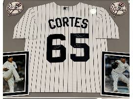 Autographed and framed Nestor Cortes jersey with the inscription "Nasty Nestor" and "2022 All Star."