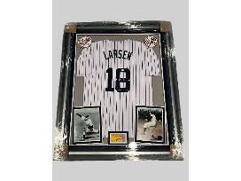 To pay tribute to one of the best pitching performances of all time in the biggest of games, we have assembled and framed a Yankee jersey personally autographed by Don Larsen, to which he added the inscription "WS PG 10-5-56", and an authentic original ticket to the very game where Larsen accomplished this once-in-history feat.