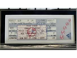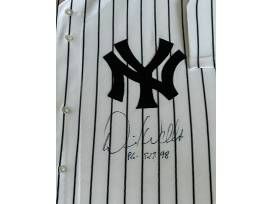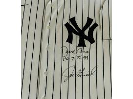 Celebrate perfection with this pair of framed memorabilia items. David Wells has autographed his jersey and included his hand written inscription "PG - 5-17-98" along with an authentic original ticket to his perfect game, which has also been personally autographed by Wells. David Cone has similarly autographed his jersey and included his handwritten inscription "PG 7-18-99" along with an authentic original ticket to his perfect game, which has also been personally autographed by Cone. Cone's jersey also includes the autograph of Joe Girardi, his catcher for that game.